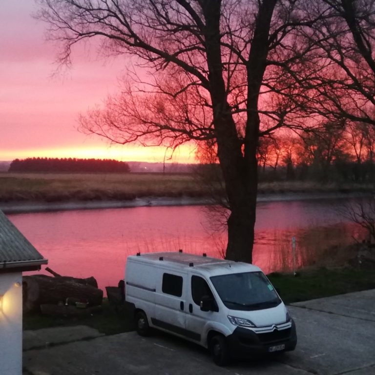 Direkt am Wasser der Oste mit Blick auf den Sonnenuntergang: Hier wird das Übernachten zu einem besonderen Erlebnis.
